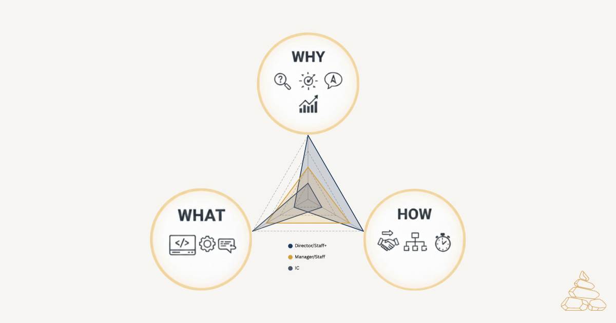 Early career Individual Contributor: WHAT is primary. Your value is the code you write, the features you ship, and the problems you solve directly. You should understand the Why, but you’re mostly consuming it from others.